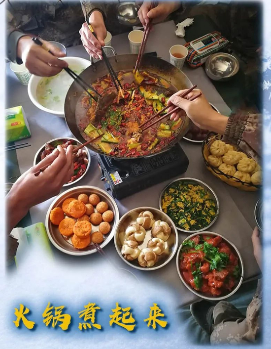 ▲在海拔5000米的新营房里吃着火锅唱着歌图片来自西部战区