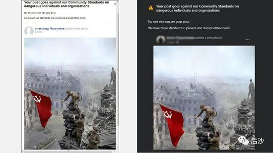 2020年5月9日,俄罗斯纪念反法西斯战争胜利75周年。推特当天立刻封杀了一批发布“苏联红军插旗柏林国会大厦”的账号,理由是“违反关于危险人物或组织的社区规定”。