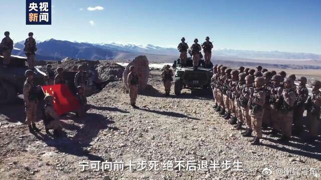 故事的最后一幕,是一场庄严的主权宣示仪式。在5592观察哨执行任务的边防连官兵整齐列队,在五星红旗面前庄严宣誓:宁可向前十步死,绝不后退半步生。