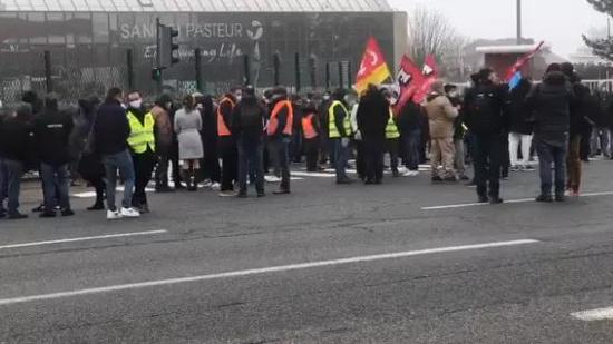赛诺菲员工罢工,抗议公司裁员政策(推特截图)