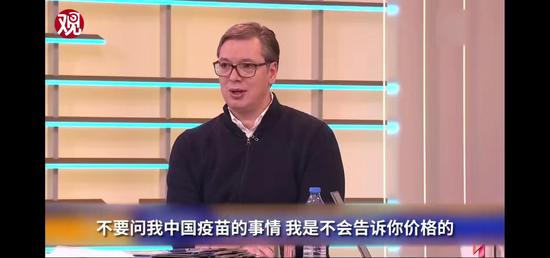 当地时间1月24日,武契奇在接受媒体采访时大赞中国疫苗,称其质量是所有疫苗中最好的。不过他“口风很紧”,不透露价格(观察者网视频截图)