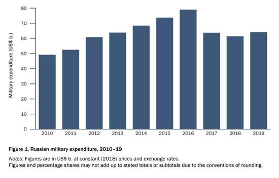 而且,在经过连续减少后,俄罗斯的军费好不容易在2019年实现了增长,达到651亿美元,结果马上又降了回来。