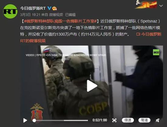 根据俄罗斯媒体的报道,近日俄罗斯国家近卫军特种快反部队(СОБР)在克拉斯诺亚尔斯克市突袭了一地下色情影片工作室。