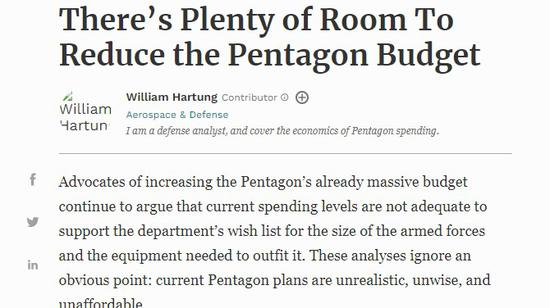 据美国媒体《福布斯》网站报道,主张增加五角大楼预算的人继续争辩说,目前的国防开支水平不足以维持美国的军队规模和所需的武器装备。但这些分析忽略了一个明显的问题:目前五角大楼的计划是不现实、不明智,而且也是负担不起的。
