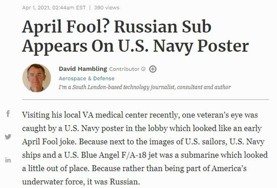据美国媒体《福布斯》网站报道,最近,一位退伍军人参观了当地的退伍军人医疗中心,大厅里的一张美国海军海报吸引了他的目光,这张海报看起来就像是愚人节的笑话。因为在这张有美国水兵、美国海军舰艇和美国蓝天飞行表演队的F/A-18战斗机的海报里面,还出现了一艘看起来有点不合适的核潜艇。因为它不是美国海军的装备,而是俄罗斯的。