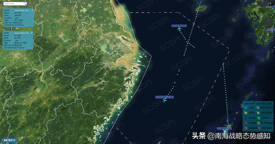 图片说明:美军机飞行轨迹图 来源:南海战略态势感知
