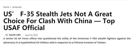 美军官:F35两年模拟对抗中国空军 都遭受灾难性失败