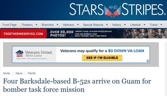 美军向关岛调4架B52 美媒:向对手展示战略武器部署