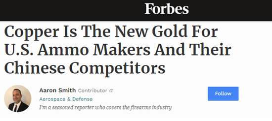 在新型冠状病毒疫情大流行期间,美国的枪支销售创造了历史纪录,因为美国人需要武装自己,以保护自己免受日益可怕的国家内乱和犯罪率上升的影响。而有枪支就需要有子弹,制造子弹需要火药,而制造弹壳需要用黄铜等原材料。美国主要的弹药生产商VSTO公司的首席执行官克里斯•梅茨表示,铜对我们来说是非常重要。