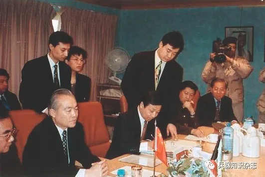 ▲ 中方代表团在PLZ45-155毫米自行炮武器系统出口合同上签字2000年11月,兵器部召开武器系统设计定型会,PLZ45-155自行炮武器系统被评价为:第一个集信息化、数字化、自动化、自行化于一体的成套火炮武器系统,开创了火炮研制的新阶段,使我国地炮压制武器的研制由单一装备向成套设计、成套定型、成套装备的方向发展,对我国地炮压制武器的跨越式发展起到了极大的推动作用,标志着我国地面压制武器系统的研制水平已迈入世界先进行列。2000年12月,外贸155自行炮武器系统第一营对某国成功履约。2001年,某国再次向中国订购了一个营的155武器系统。第二营的签订,奠定了我国在中东市场的军贸地位,打破了发达国家对中东军贸市场的长期垄断。