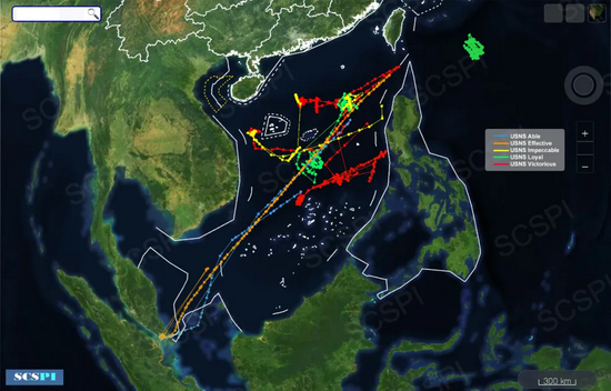 2021年1月-6月,美军五艘海洋监视船在南海活动轨迹图