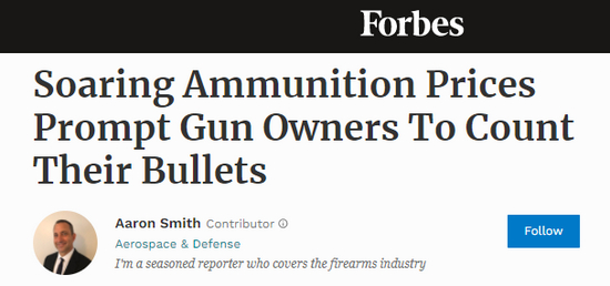 美国国家射击运动基金会的枪支工业集团公共事务主管马克·奥利弗称,原材料、运输、仓储和分销成本的增加是会导致子弹价格的上涨。再加上供求关系,目前美国人对武器弹药的需求仍在快速增长,需求的增加也意味着价格攀升。