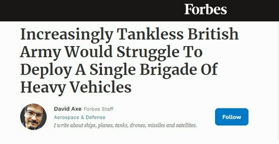 现在的英国陆军已经慢慢的陷入了战车不足的紧急状况。德国、法国和意大利陆军的都部署了多个重型装甲旅,配备有主战坦克和步兵战车。据英国陆战分析专家尼古拉斯·德拉蒙德称,英国陆军不可能指望与这些国家的陆军相匹敌。如果现在就爆发冲突,那么英国陆军可能都派不出一个装甲旅。
