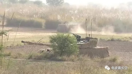 从公布的画面看,演习中第6装甲师的装甲兵为所有的VT-4都覆盖了精致的伪装,使用茅草做成,在草丛中的伪装效果非常不错,对普通的可见光侦察器材能够起到很好的欺骗作用。同时VT-4本身也用了防红外涂料,红外特征也有降低,所以综合伪装效果是可以有效的减少被敌方发现的概率。另外,良好的伪装也能破坏和干扰对方的瞄准,印军装甲部队还有大量没有升级炮长瞄准镜的T-72M1,它们是没有热成像通道的,因此VT-4良好的伪装在与这些T-72M1部队对抗时,是很有作用的。