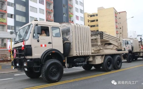 至于AR2火箭炮其实就是PHL-03式远程火箭炮的外销型,因此系统也类似。该型火箭炮底盘采用万山WS2400型8×8轮式越野车,战斗全重44.5吨,配备500马力发动机,满载时公路最大行驶速度60千米/时,航程650千米,该车安装有12根发射管,仅需3分钟就能完成即停即打,能在38秒内完成12管火箭弹的齐射攻击,然后在20分钟内靠同型号的弹药运输车上的起重吊臂进行装弹作业。